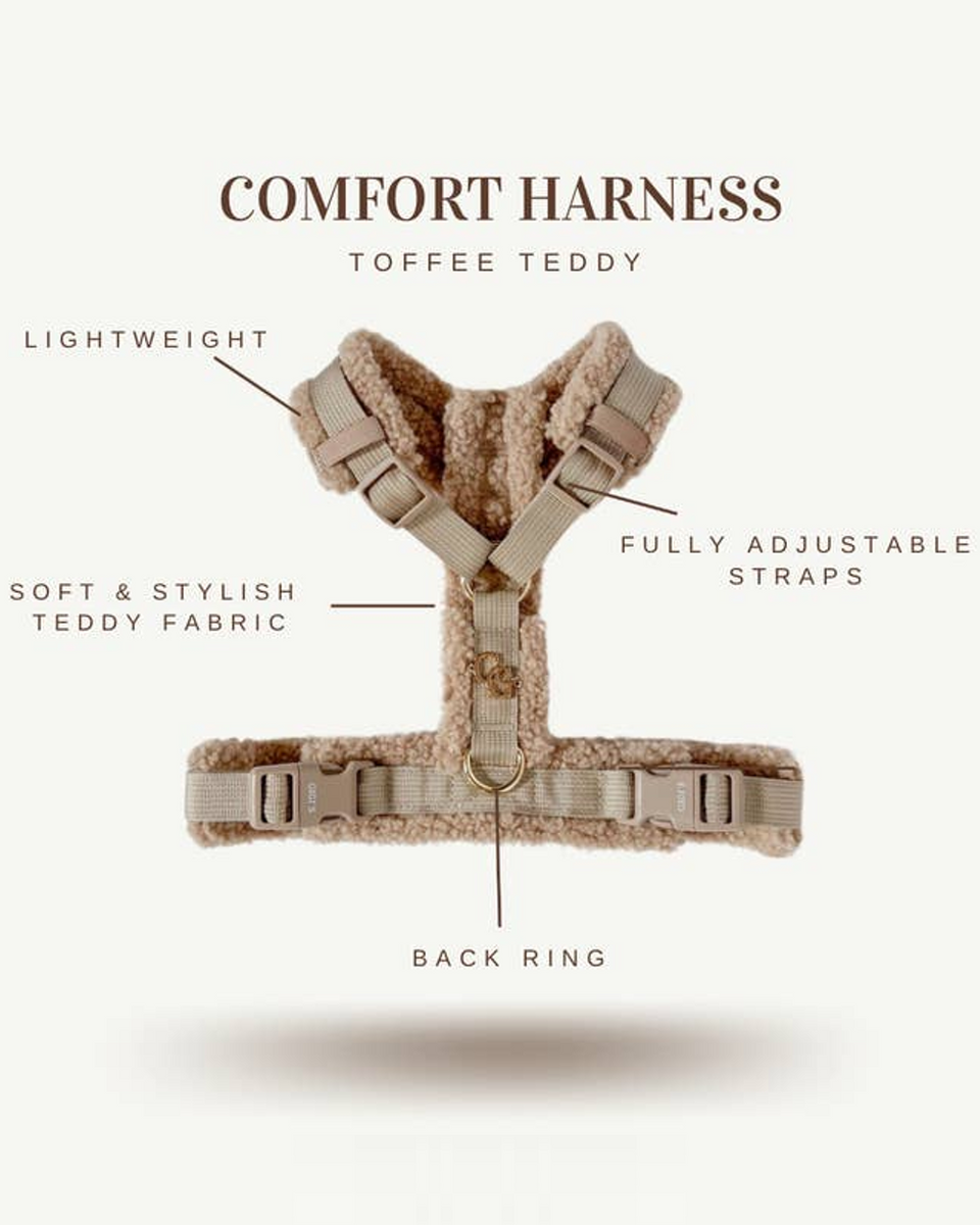 The On Cloud K-9 Toffee Teddy Dog Harness blends luxurious softness with everyday practicality, ensuring your pup stays cozy and secure on every adventure. Crafted from ultra-soft Teddy fabric in a dreamy toffee hue, this harness is as chic as it is functional. Adjustable straps offer a custom fit and dual front-and-back rings add versatility for leash attachment. Perfect for pups who deserve nothing but the best, it’s the ultimate walking essential.