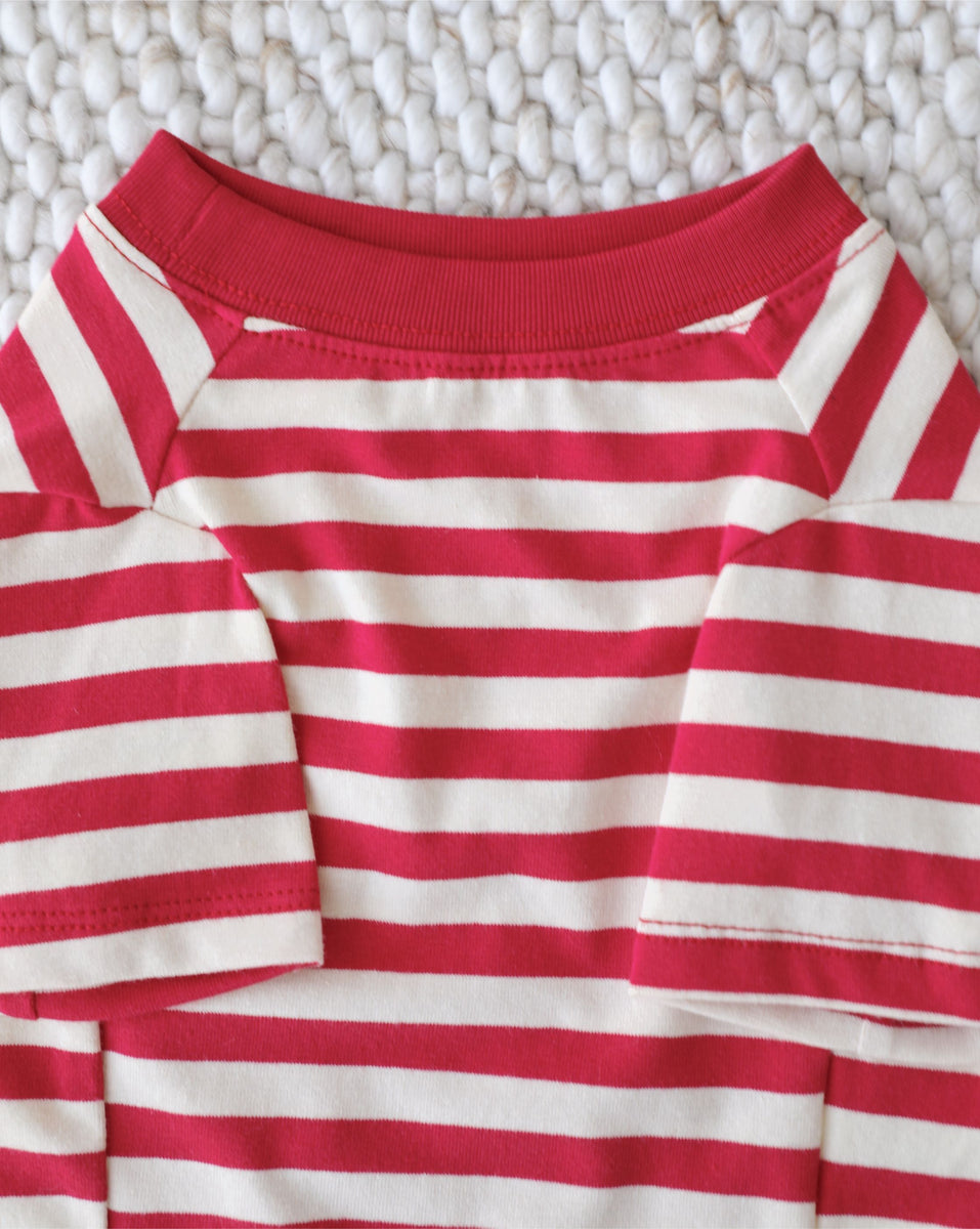 The Casual Cutie Red + White Relaxed T-Shirt is soft and stylish, made for dressing up or dressing down. A perfect layering piece, this tee has a soft, vintage feel; airy and worn in, like it's been passed down from pup generation to pup generation. Layer with a cute vest or under a button-up for a look that says: "I may be a dog, but I know fashion."