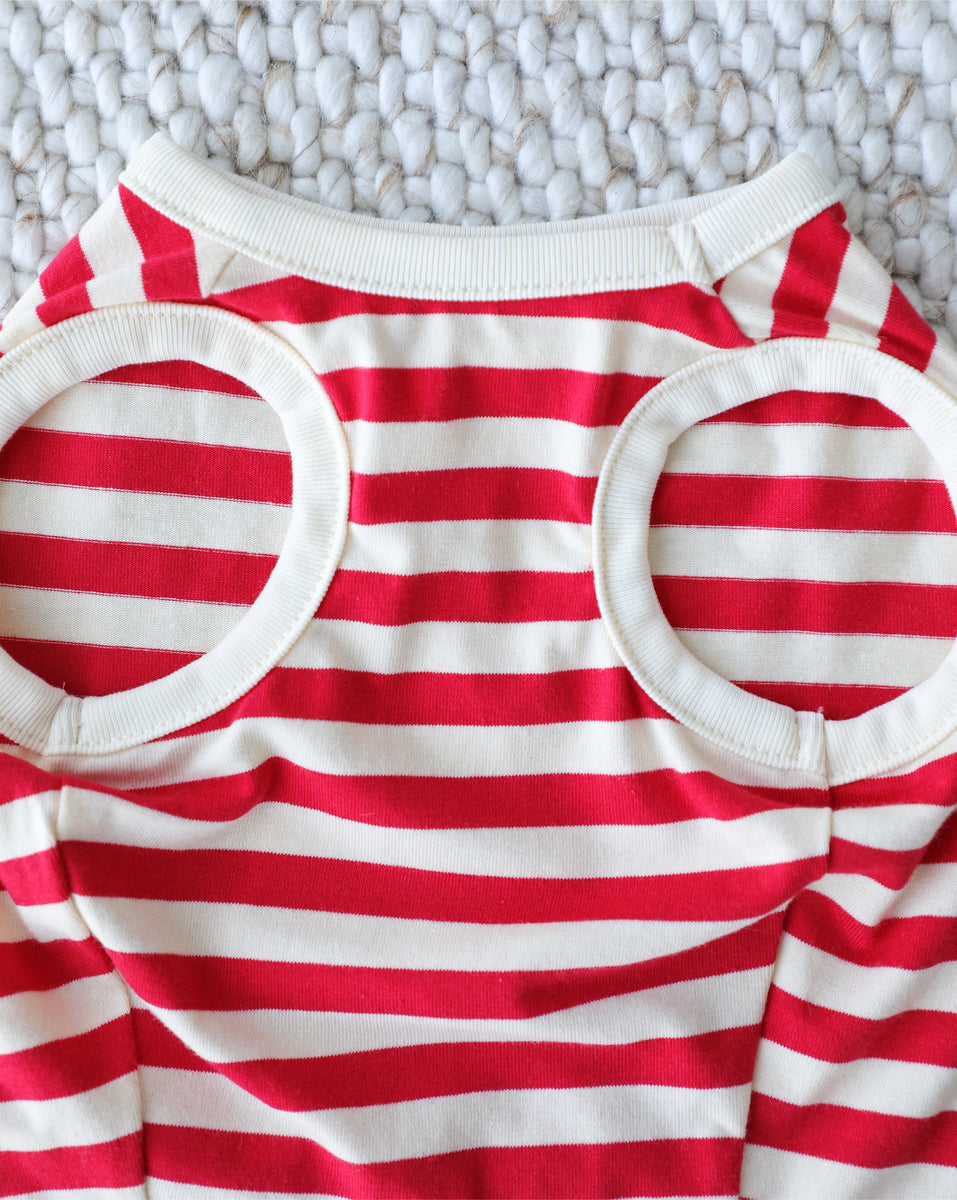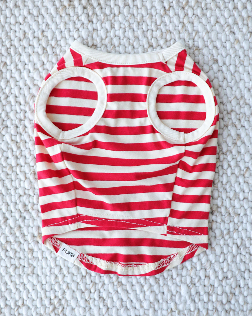 The Pup Rally Red + Ivory Striped Dog Tank pairs timeless stripes with a modern pup fit. Lightweight, stretchy, and seriously comfy, this everyday essential is made for sunny strolls, park playdates, and casual couch lounging. With a classic crew fit and bold red-and-ivory pattern, it’s the kind of piece that turns “just a walk” into a full-on fashion moment. Style it solo for effortless cool or layer it under a jacket or button up for extra flair. Either way, your pup’s wardrobe just leveled up.
