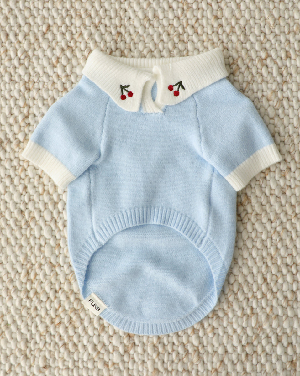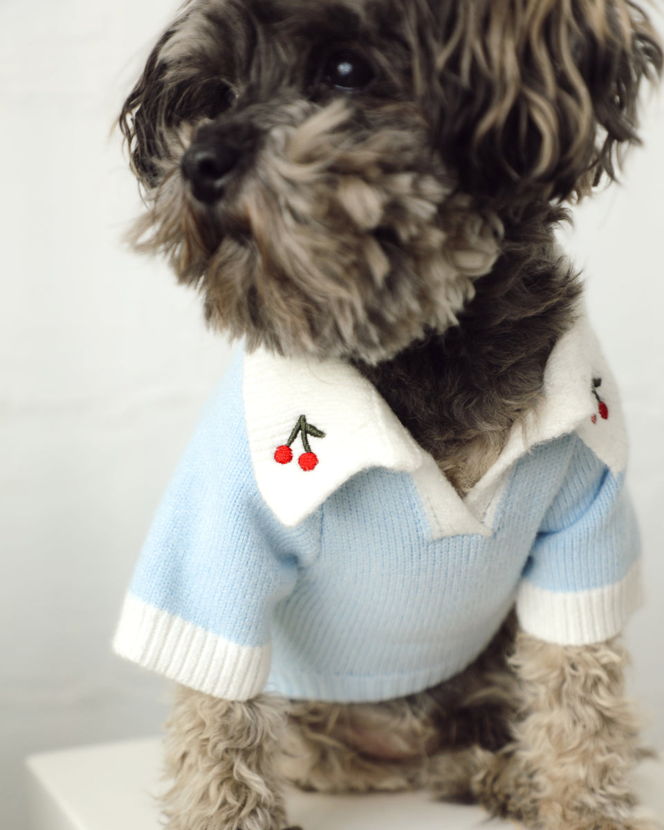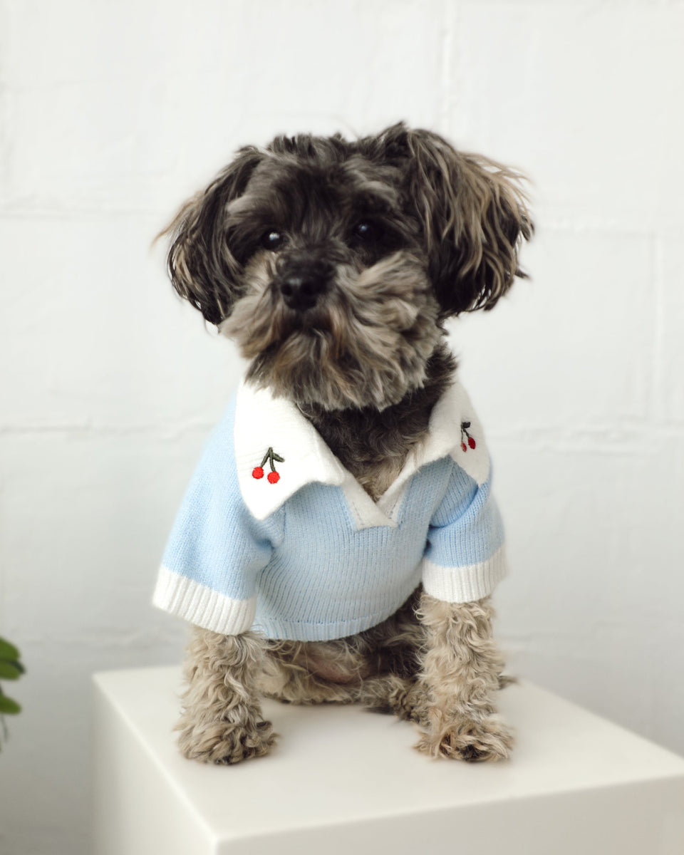 Cherry On Top Light Blue Polo Dog Sweater