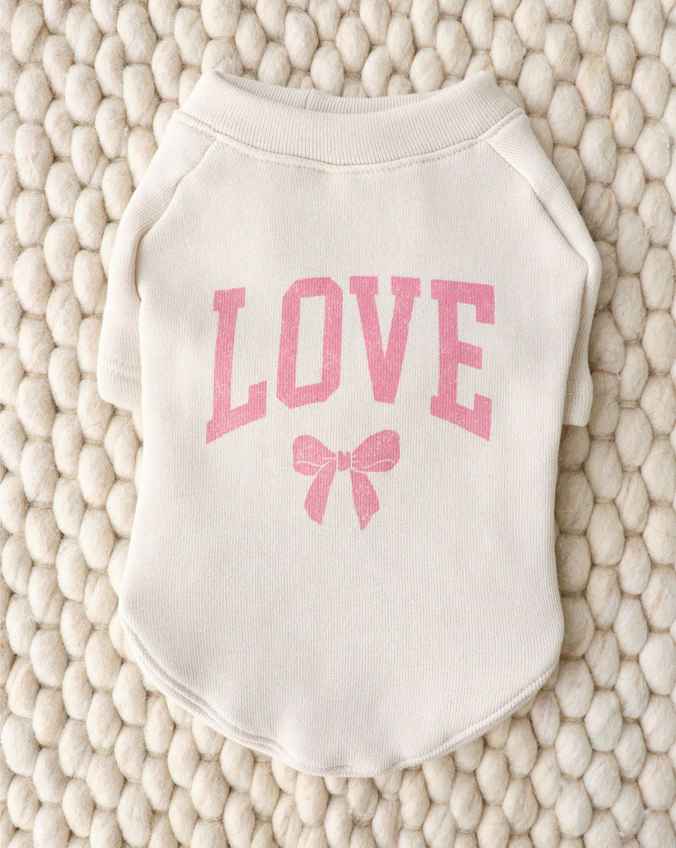 The Wrapped in Love Dog Sweatshirt is the perfect crewneck pullover for your cutie. Made from incredibly soft fleece, this sweatshirt is a built-in favorite that makes you crave sweatshirt weather. An adorable, pink love + bow graphic is sure to get some attention, so be ready for the stops and stares. Easy to layer, streetwear ready, and an everyday essential, this is our new favorite - and yours, too!