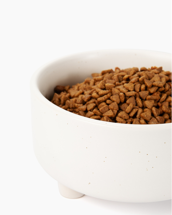 The Treat Yourself White Ceramic Dog Bowl is heavyweight, durable, and raised for comfort. This hand-dipped ceramic bowl features a subtle speckled finish that adds texture, character, and a modern artisan feel — making it as stylish as it is functional for everyday meals. Easy to use and easy to clean, so you and your pup can get back to the things that matter: refilling the dish with more tasty treats!